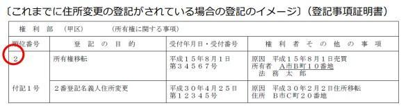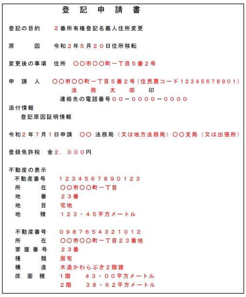 【引っ越しによる住所変更時の登記申請書の記載例】